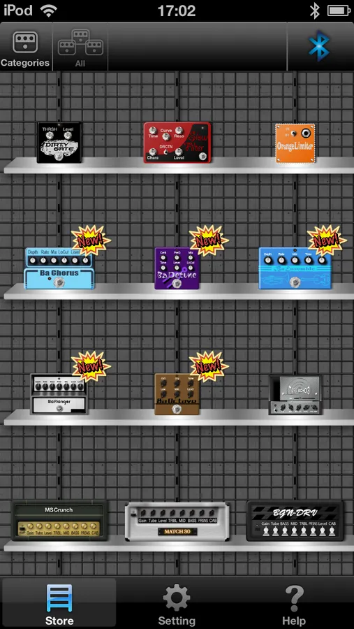 StompShare is a virtual effect shop app that recreates the effects display area of an instrument shop. This shop includes not only popular types of stomp box effects and rack mount effects, but it also offers guitar amp models and emulations of classic effects that can no longer be found new, for example. You can easily audition and even try effects before buying the ones that you like by connecting an MS-100BT hardware multistomp effector and an iOS device by Bluetooth. Then, you can add purchased effects to your MS-100BT and use them like any other hardware effect. We plan to continue adding even more variety of effects to StompShare in the future.