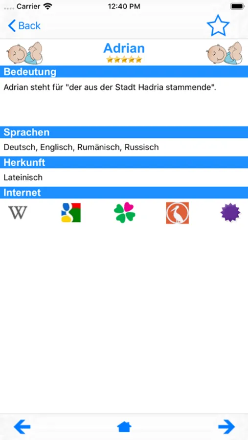 Diese App wurde direkt für den deutschsprachigen Raum produziert und enthält zu jedem Namen auch dessen Bedeutung.