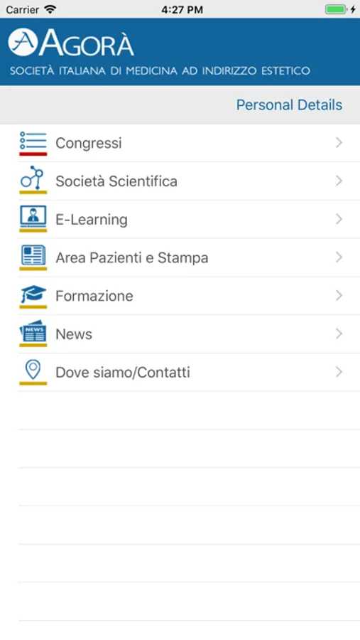 Applicazione di Agorà - Società Italiana di Medicina Estetica, permette di fruire dei contenuti del congresso di Medicina Estetica, della rivista e della Piattaforma E-Learning