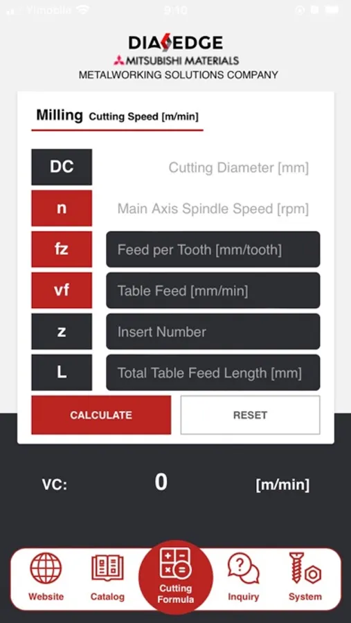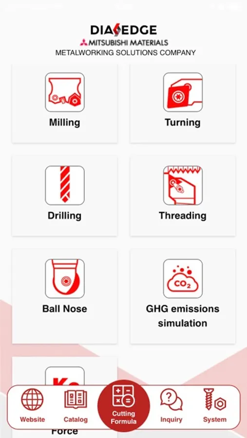 This is the cutting formula application of carbide tools produced by Mitsubishi Materials.