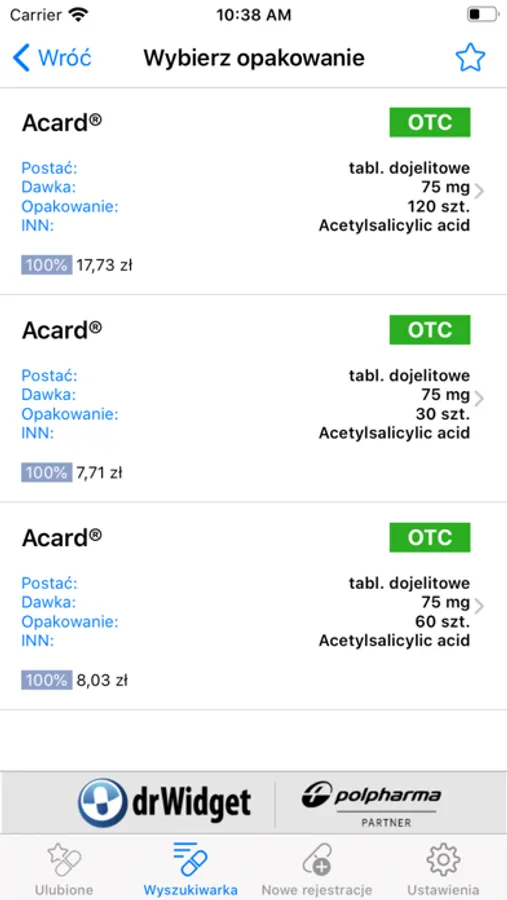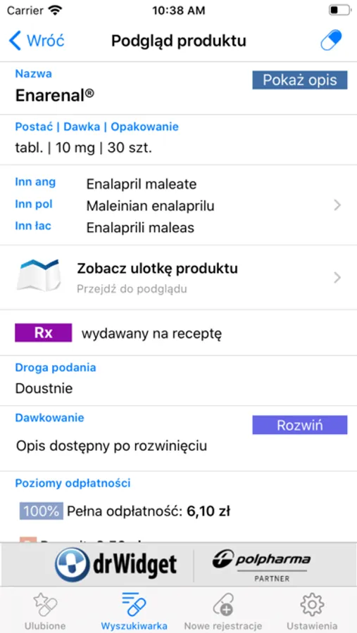 Intuicyjna, a przy tym bardzo zaawansowana wyszukiwarka pozwala szybko odnaleźć konkretny produkt. Zaznaczenie filtrów umożliwia dostosowanie wyników wyszukiwania do indywidualnych potrzeb. W zależności od preferencji użytkownika aplikacja wskaże produkty refundowane lub nierefundowane, na receptę lub bez recepty, do stosowania w ciąży itp.