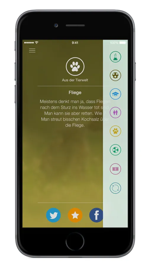 Die App bietet zahlreiche Fakten in den folgenden Kategorien: