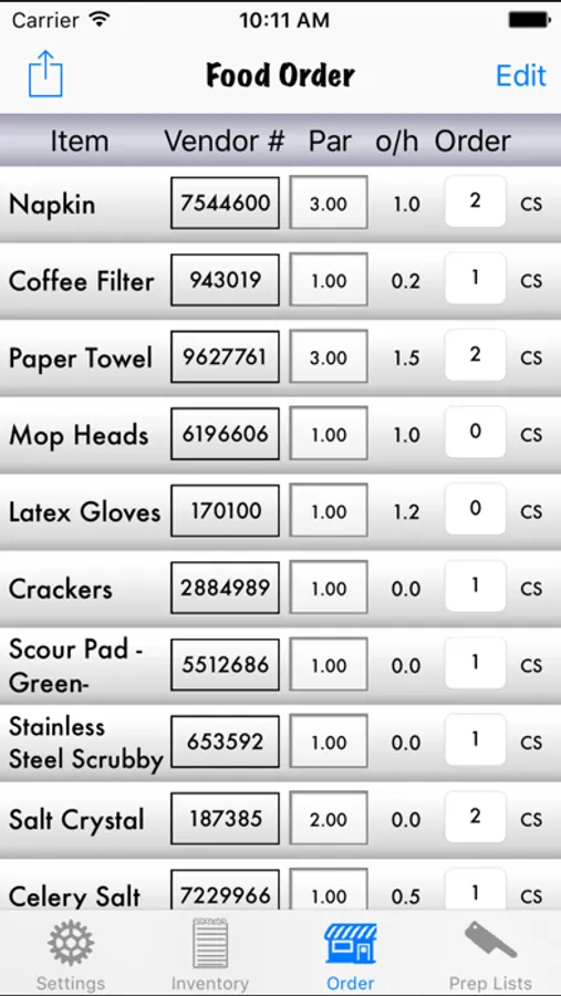 Speaking from experience, I know restaurant inventory can be a time consuming process so I designed 42 each make recording food & liquor inventory quick and easy. 42 each can also be used for ordering (giving you the option of uploading your orders to your vendors) and prep lists (showing order totals and helping recommend pars to eliminate waste, see below for more details).