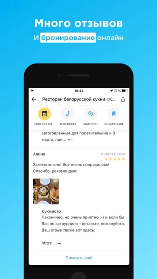 • Бронирование столиков.