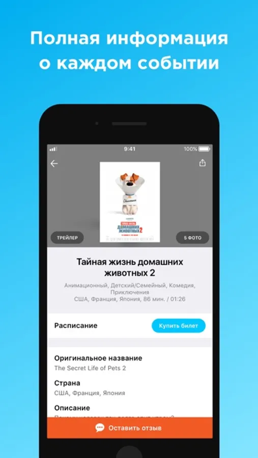 • Расписание, рецензии, отзывы, трейлеры фильмов.