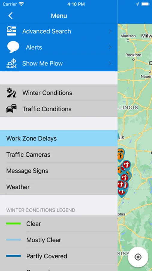 The MoDOT Traveler Information app shows current work zones, incidents, and weather-related road conditions on state-maintained routes in Missouri. Issues that may have an impact on travel are loaded automatically.