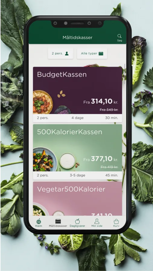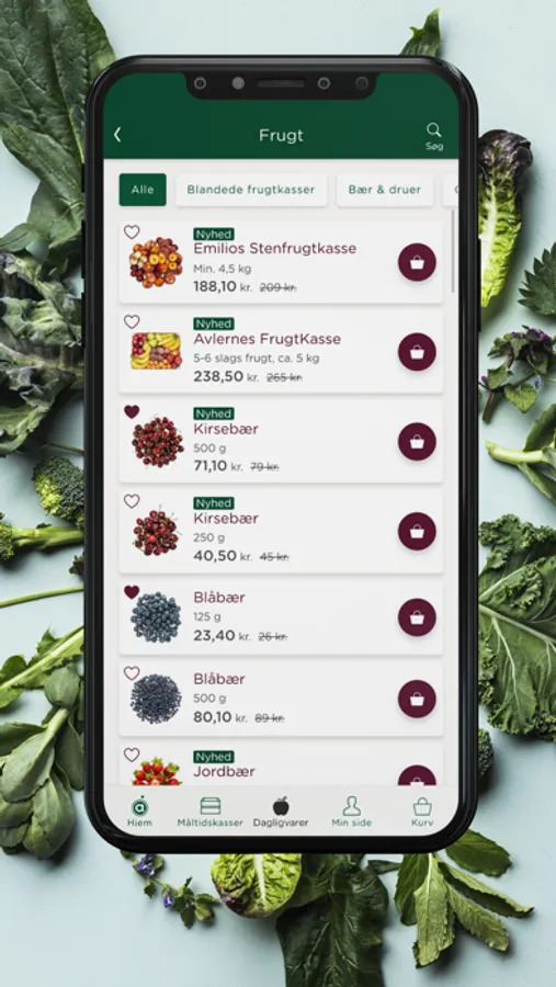 Du finder måltidskasser og dagligvarer fra vores hele tiden voksende udvalg af frugt, grønt, måltider og alt andet du behøver til hverdagen.