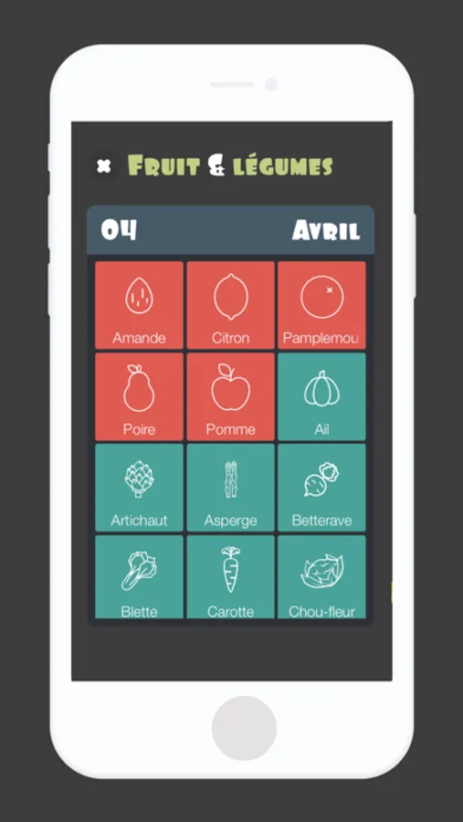 Calories, protéines, glucides, lipides… tout y est pour vous aider au mieux à sélectionner les produits de saison dans une interface ludique et colorée !