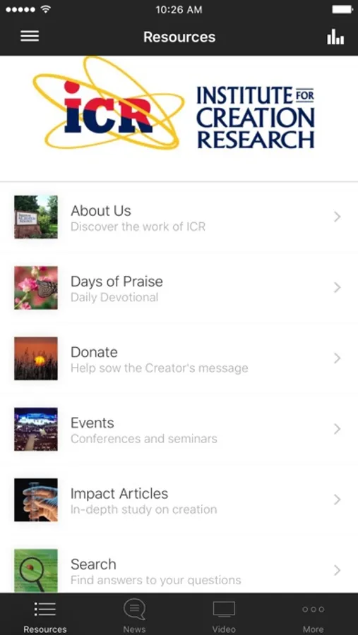 The Institute for Creation Research app was developed with the Subsplash App Platform.