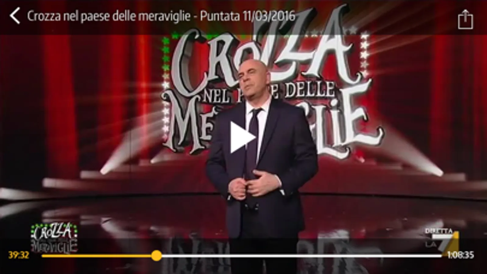 Scarica e accedi all’App “Crozza nel Paese delle Meraviglie” per non perdere nessuno dei suoi PERSONAGGI, rivedere LE PUNTATE integrali o le COPERTINE di Crozza ospite di Giovanni Floris a “diMartedì”. Nella sezione MUSICA troverai anche disponibili le tracce audio e i testi delle “Cover” liberamente reinterpretate dall’estro satirico di Crozza per una lettura dell’attualità a tempo di musica