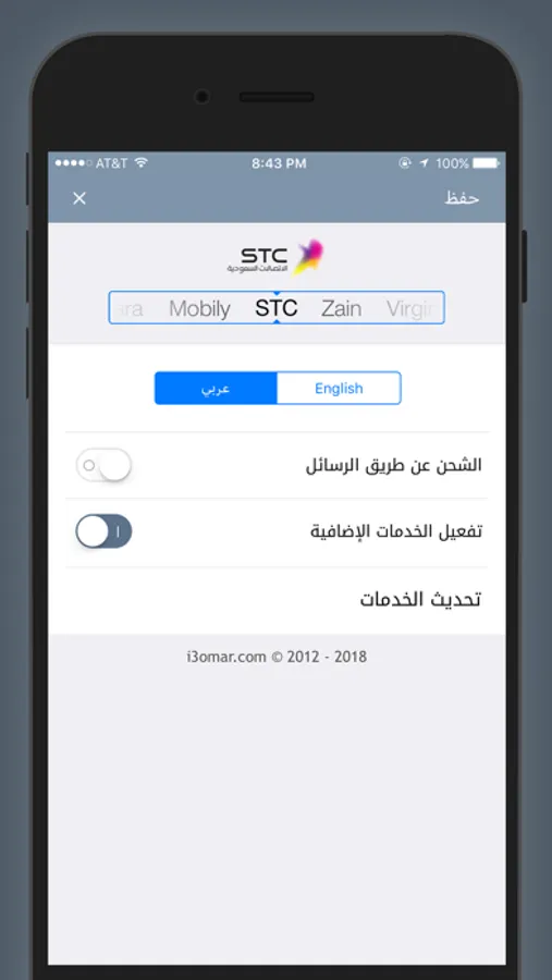 التطبيق يحوي على العديد من الخدمات المتعلقه بالشحن والرصيد.