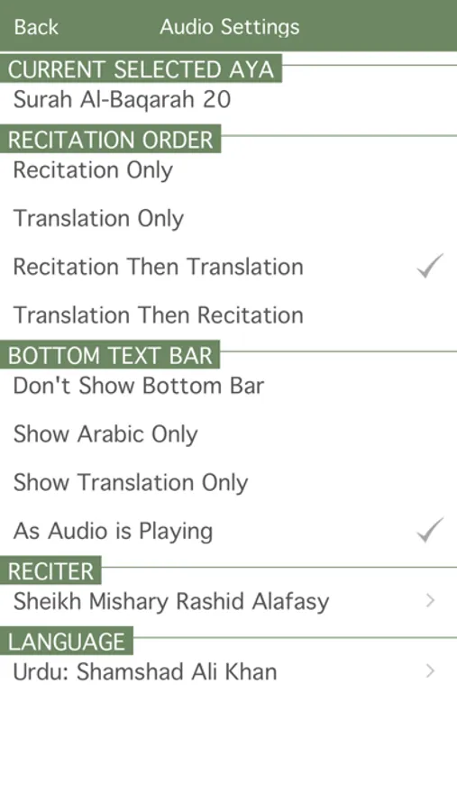 Reminders for any surah may be set on daily basis (e.g Surah Yaseen) and for weekly basis (e.g. Surah Alkahf)