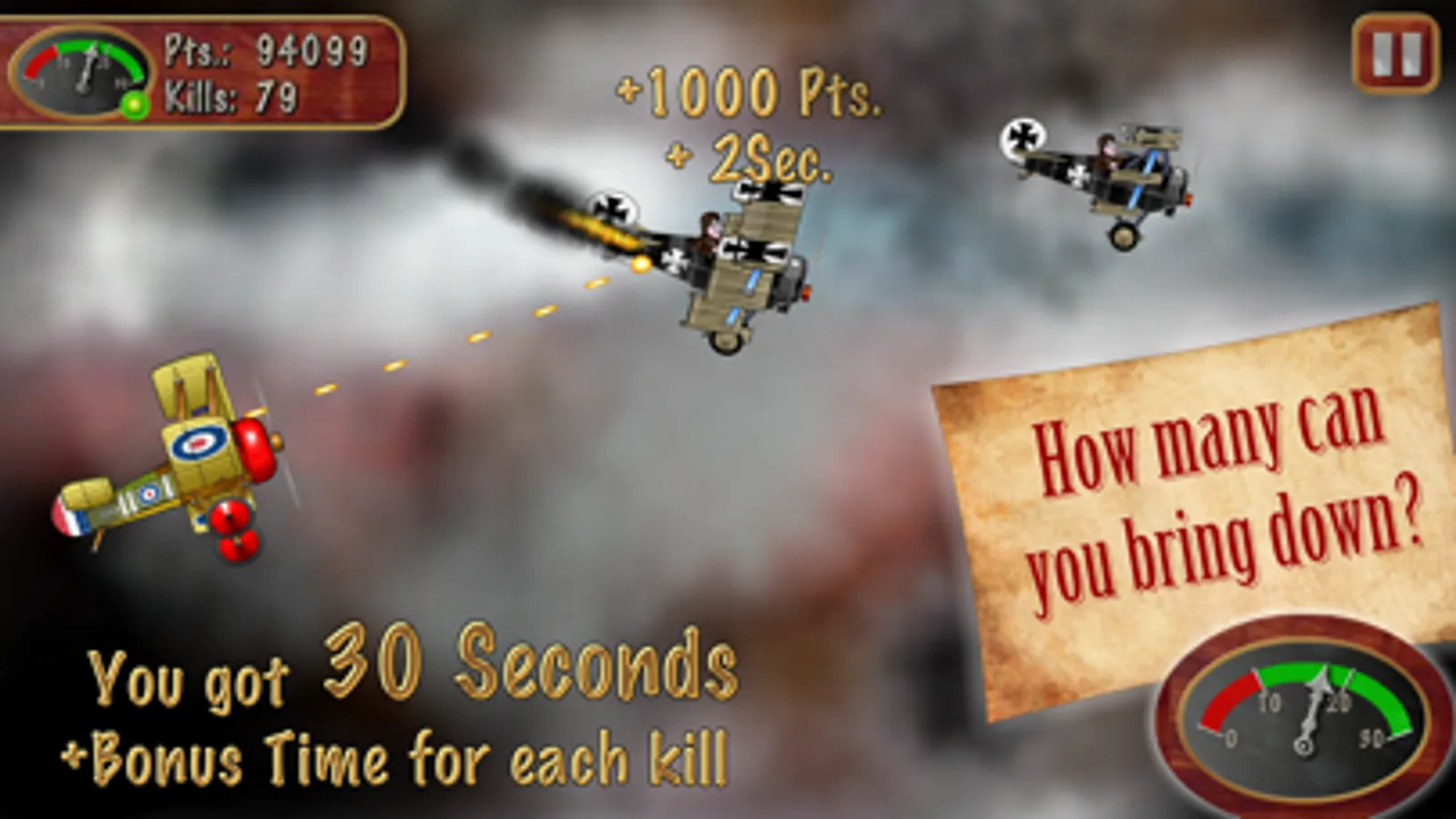 Shoot down as many enemy planes as you can in 30 seconds.
