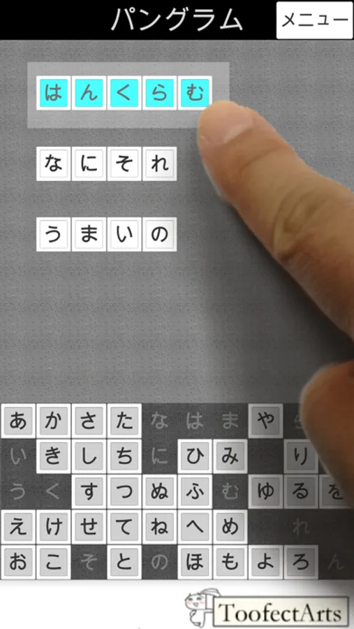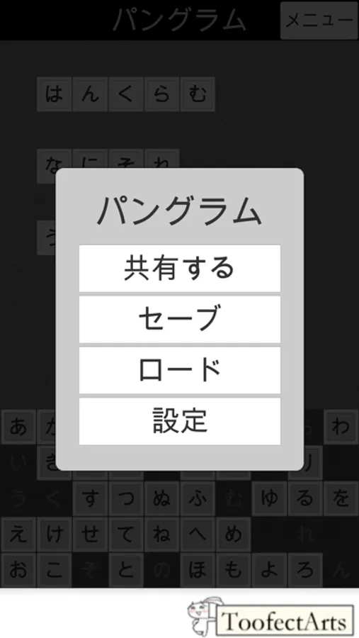 このアプリはパングラムを作るのに便利な機能を実装しました。