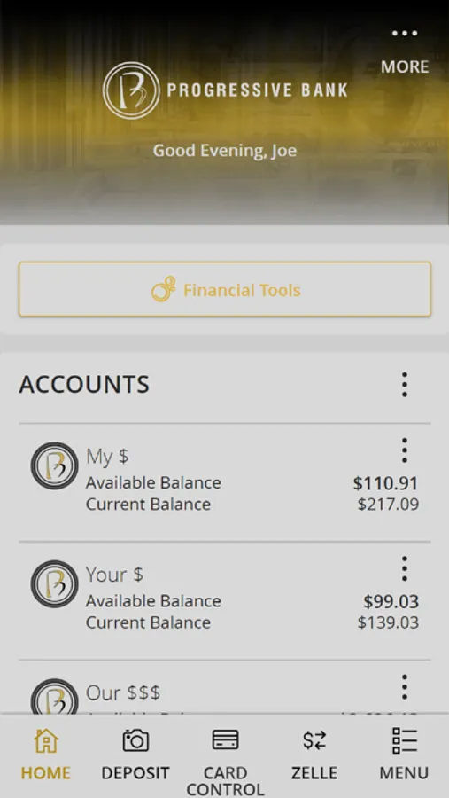 VIEW YOUR ACCOUNT BALANCES – Instantly access your current balances on any Progressive Bank personal account