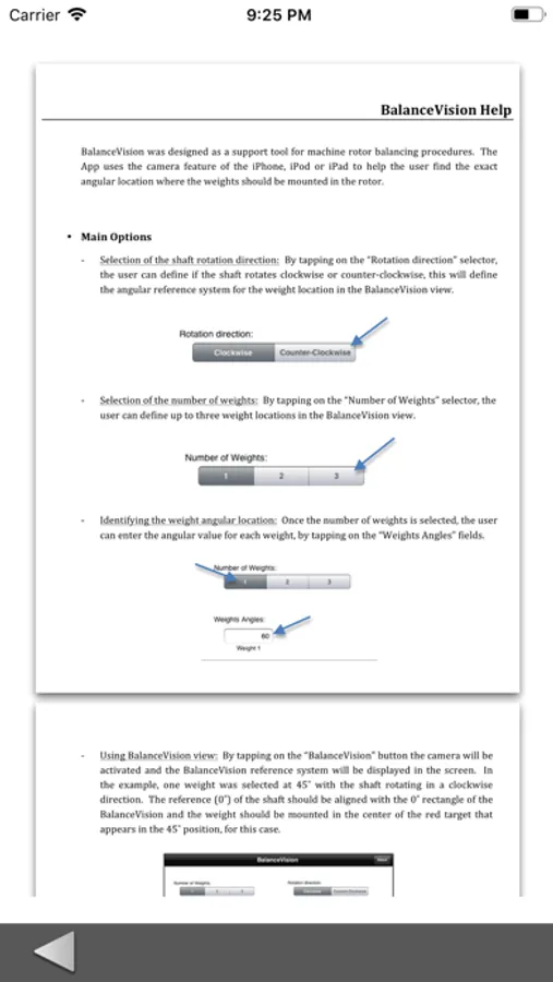 BalanceVision was designed as a support tool for machine rotor balancing procedures. The App uses the camera feature of the iPhone, iPod or iPad to help the user find the exact angular location where the trial or correction weights should be mounted in the rotor. These angles can be obtained with other of our apps, such as: iRotorBalance & iRotorBalancer; or any field balancing device.