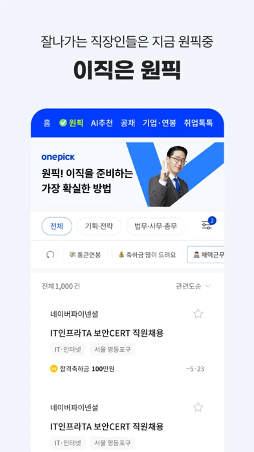 원픽만의 이력서 분석/매칭 기술로 나에게 딱 맞는 공고를 추천받을 수 있어요.