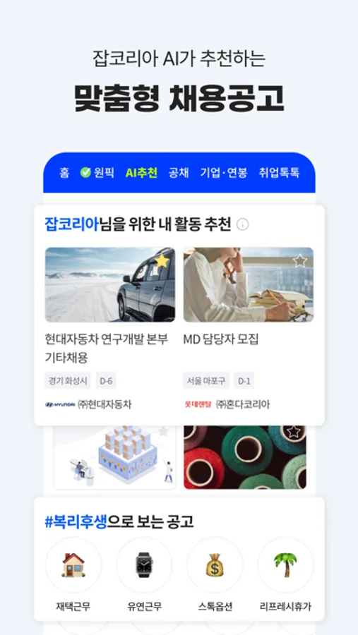 500만 이상 유저의 선택, 잡코리아 앱을 직접 사용해 보세요.