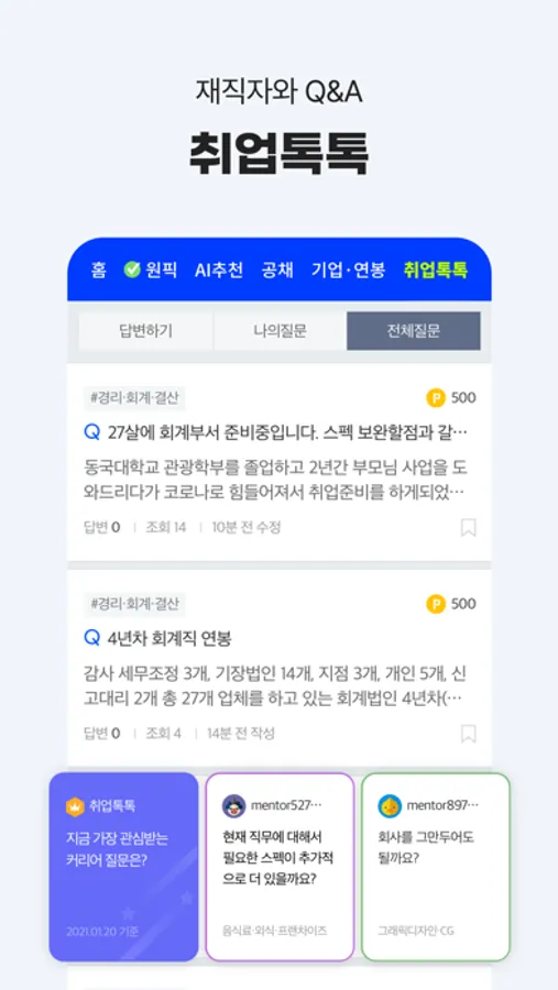 누구나 쉽고 빠르게 취업 고민을 해결하고, 멘토가 될 수 있어요.
