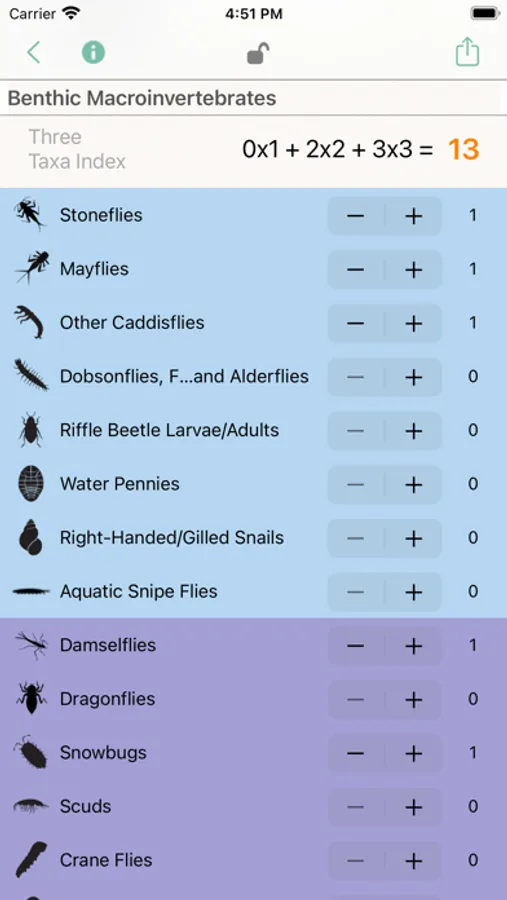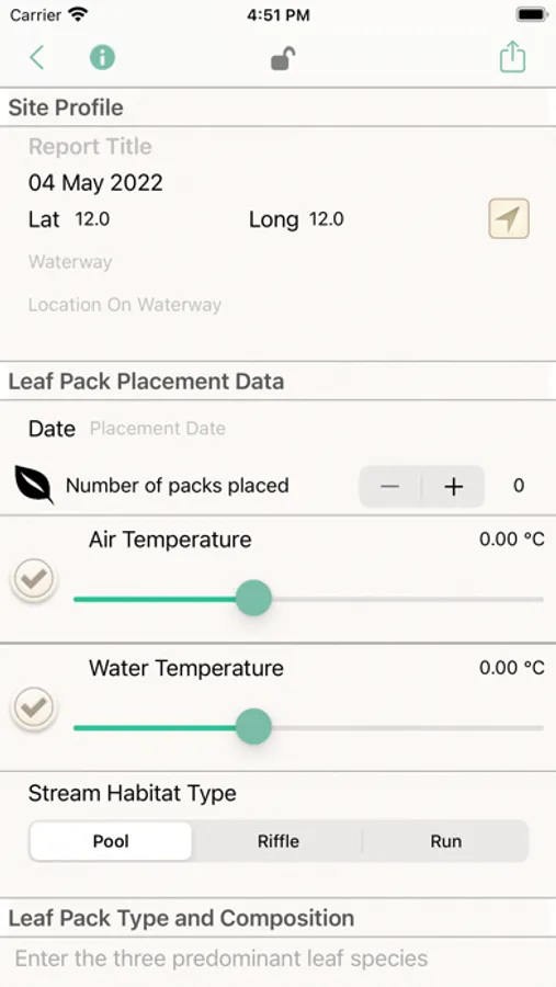 Users of all ages can record stream study data and learn about water quality indicators in learning pop-ups. Data can be recorded in a general or a Leaf Pack Network report. Stream study parameters include site location (lat. & long.), site profile information, water chemistries, physical stream data, aquatic macroinvertebrates, and much more! The macroinvertebrates section acts as a field guide of all of the major taxa used to calculate a pollution tolerance index. Pictures, sketches, short videos, and descriptions for identification are included for twenty-two macroinvertebrates.