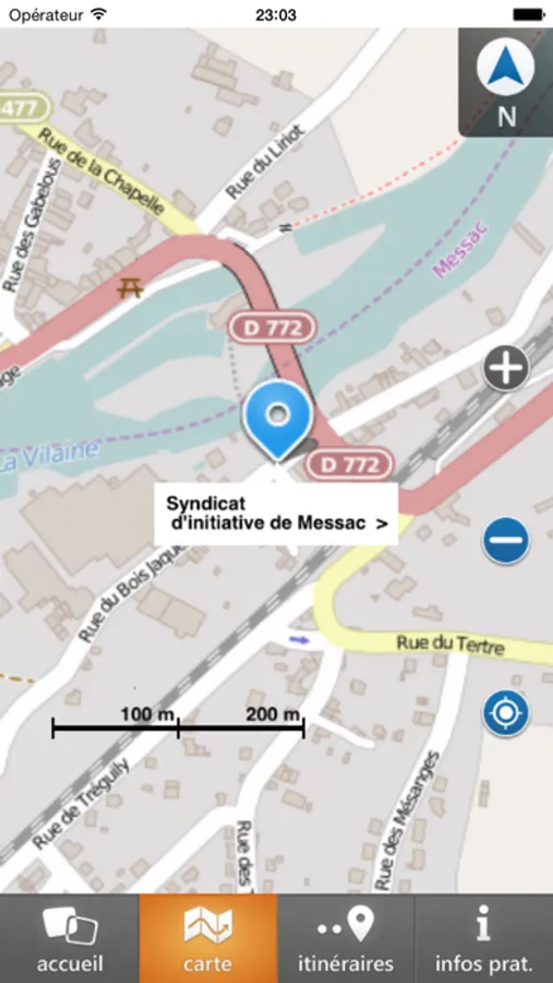 Carte : détaillée et embarquée, visualisation des parcours, position des étapes, position utilisateur, mise à jour dynamique grâce au GPS.