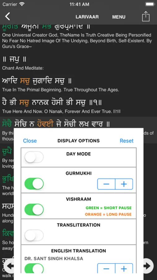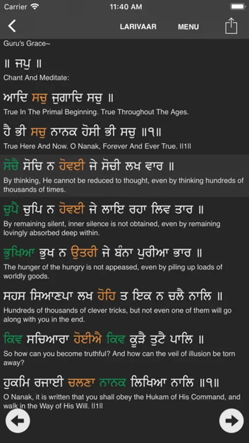 With the Grace of God the Akal Design team developed iGurbani with a new database from the ground up. The focus of this app is to allow the user to accurately read the shabads from the Sri Guru Granth Sahib Ji following a revolutionary style of showing the vishraams. Instead of commas and other punctuation the vishraams are highlighed in a specific color.