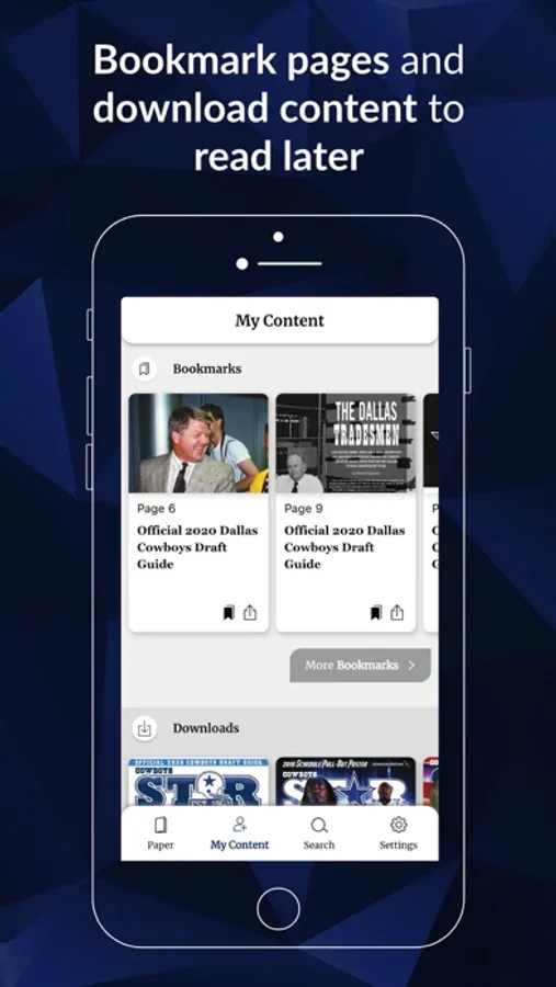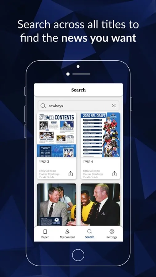Your Dallas Cowboys Star Magazine app features search functionality to find keywords relating to recent content.