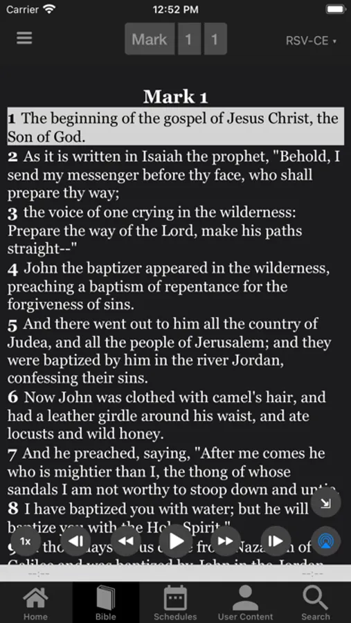 FREE: RSV-Bible text with entire Gospel of Mark audio (99 minutes) featuring Blair Underwood as Mark - plus full text of the RSV-CE Bible and access to EWTN Live content. At anytime you can purchase the complete New Testament audio.