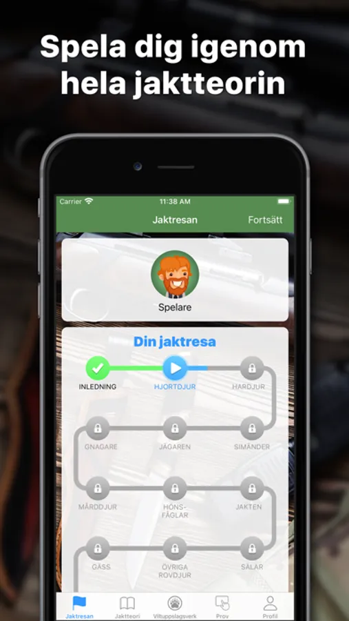 Med Jägarexamen kan du spela dig igenom hela teoriutbildningen med det pedagogiska spelet Jaktresan. Spelet består av korta teorilektioner, artpresentationer, videos och olika typer av prov. Under spelets gång samlar du stjärnor och låser upp medaljer. När du har klarat spelet har du all den kunskap du behöver för att bli godkänd på det riktiga teoriprovet!