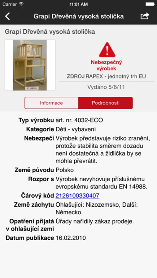 − databáze nebezpečných výrobků a rozpoznání nebezpečných výrobků přes čárový kód