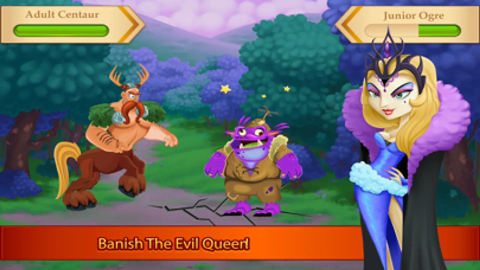 - Use your creatures to DEFEAT the Evil Queen’s minions