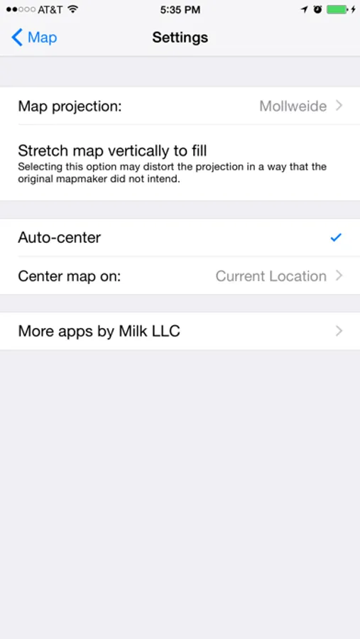 You can choose different projections for rendering the map, including Mercator, Mollweide, azimuthal equidistant, and others. You may also select to have the map follow the sun or your current location.
