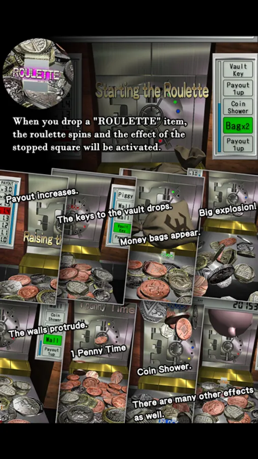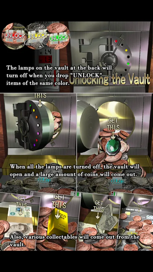 From the center vault, rare coins will come out. Such as old coins, foreign coins etc. with variety of over 140.