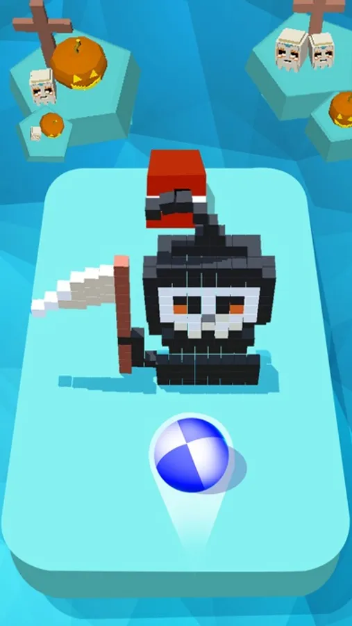 This is an addictive arcade game which allows you to smash Halloween monsters and decors using a sticky roller ball. Move the ball to smash the monsters and decors. Avoid blackhole bombs! Clean the platform to level up.