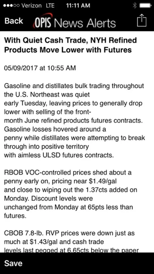 Getting OPIS' breaking news is more convenient than ever. Simply download this companion app and watch the news pour in. No more sifting through your email in-box or going to multiple websites to look for vital industry news that impacts your day-to-day business strategies.
