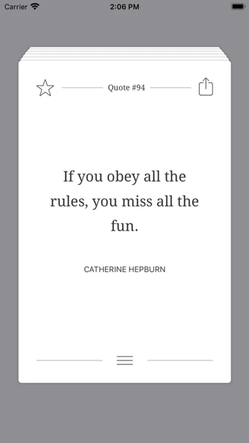When you start Quote Deck, you will be shown a random quote. If it's no good, swipe away the card to get another random quote.