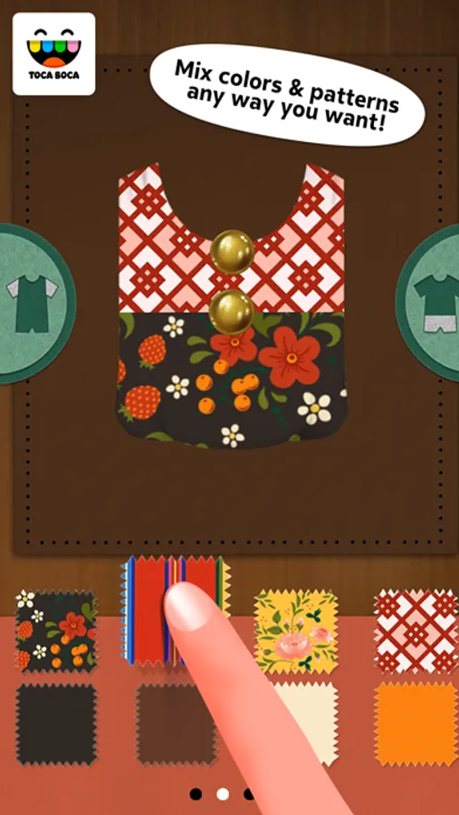 Mix and match colours, prints and fabrics – or use the built-in fabric camera to create your very own unique patterns from things around you. You can also use pictures from your device’s Camera Roll! Then add buttons, pockets and other original details. Once your outfit looks good, add the finishing touches: hats, shoes and fun accessories. Like what you see? Take a snapshot of your creation, using your own room as a background!