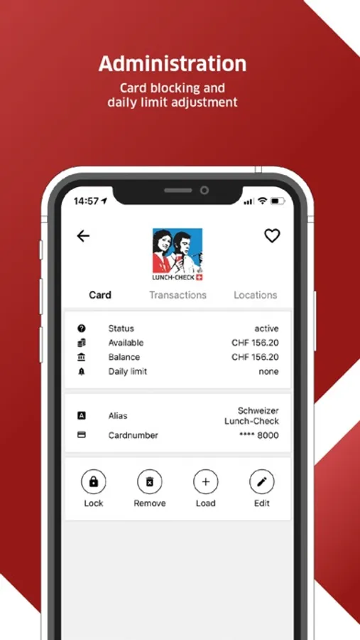 Should you wish to increase the daily limit for your next restaurant visit, you can do so quickly and easily in the app. Should you lose the card, it can also be blocked immediately in the app.