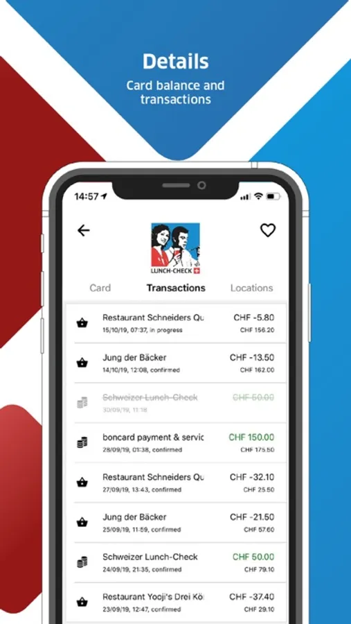 Lunch-Check is the most delicious currency in Switzerland with over 8,000 acceptance points in the catering sector. Use the app to check out where you can redeem your Lunch-Check credit, how much is still available on your card or where you have spent your credit.