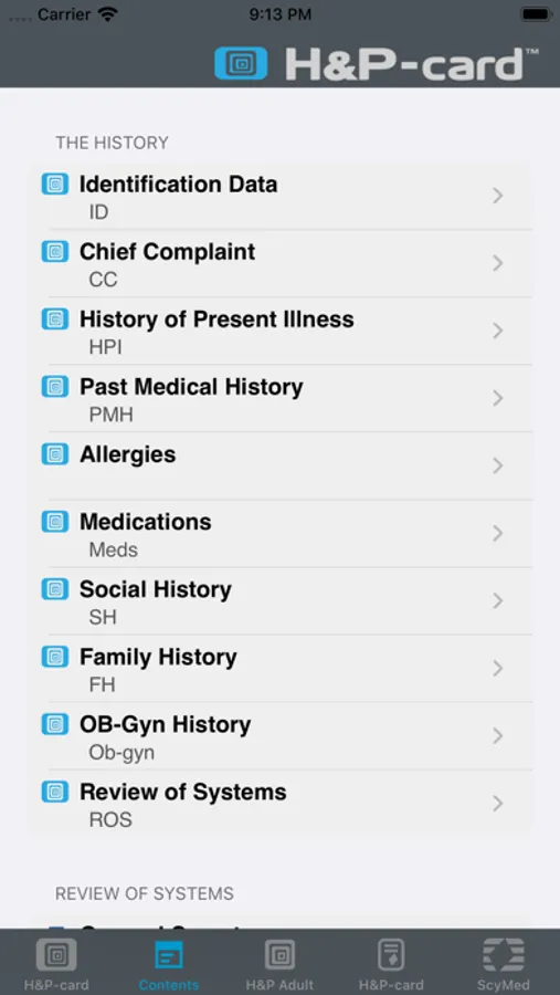 H&P-card™ CONTENTS: