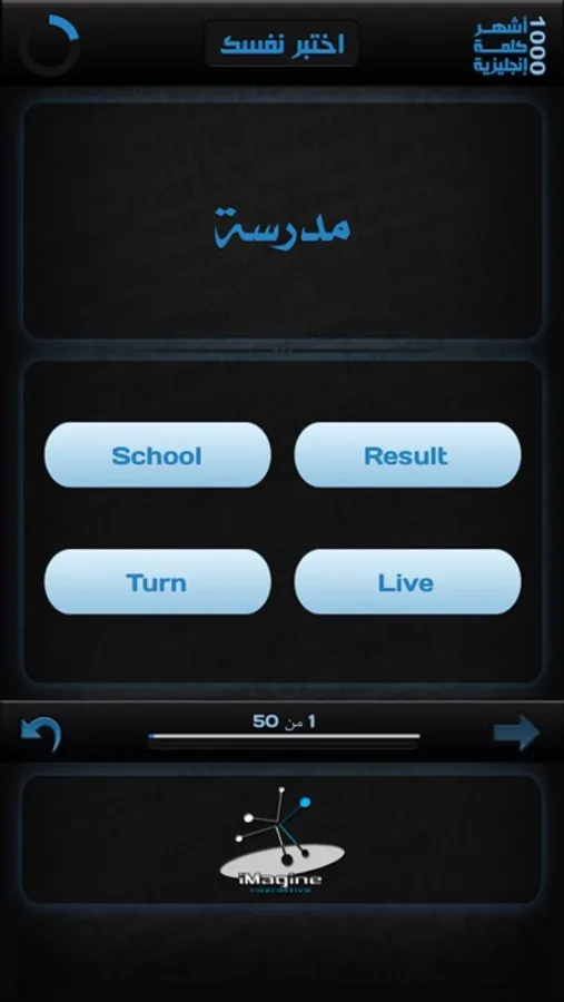 إختبر نفسك هي خاصية تتيح لك تقييم مستواك في الكلمات الإنجليزية وذلك عن طريق الإجابة عن ٥٠ سؤال لكل سؤال مهلة ١٠ ثواني للإجابة عليه مع عرض نتيجة الإختبار في آخر الإختبار