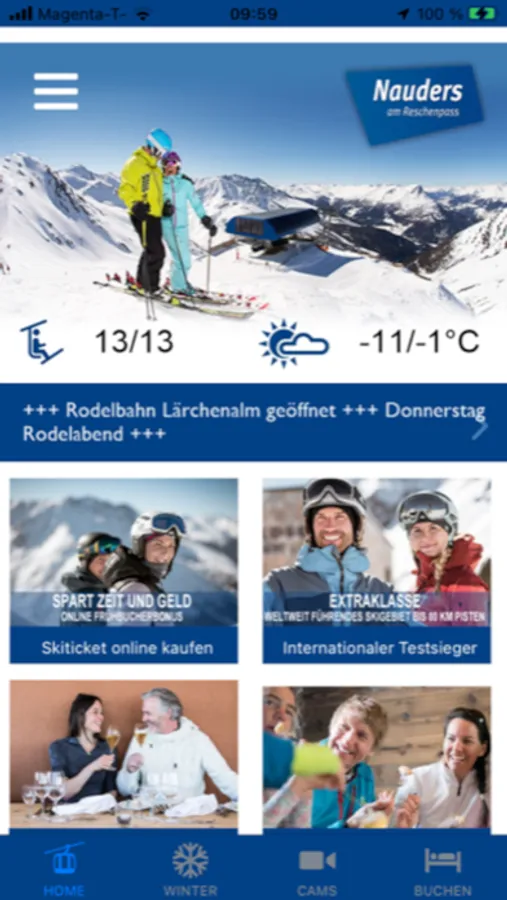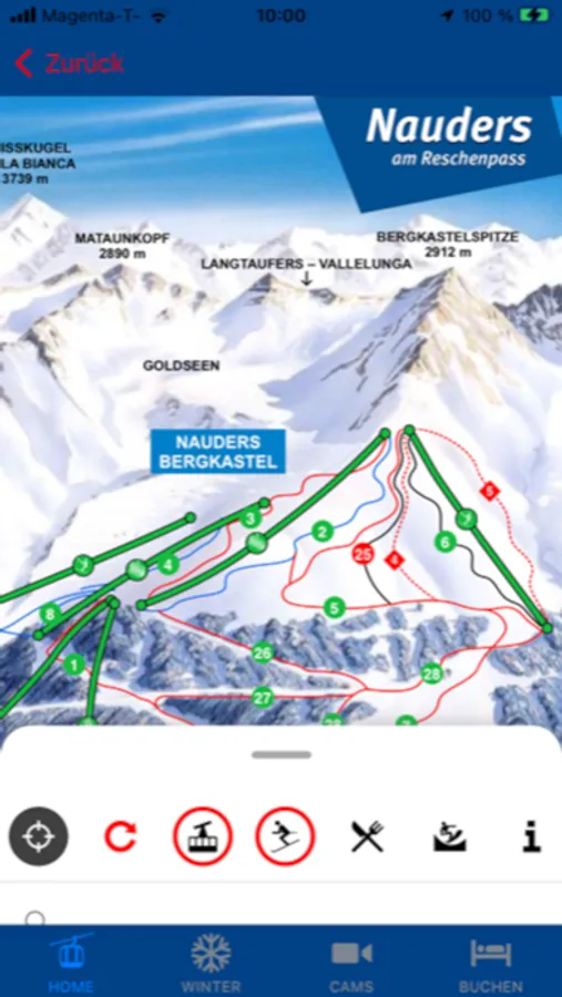 Interaktiver und real-time Guide für Nauders Tirol mit GPS Ortung auf dem Pistenplan, zur einfachen Orientierung, Live-Informationen direkt von der Bergbahn – geöffnete Pisten und Lifte, Wetter, Webcams, Wetterstationen, Livestreams, Schneehöhen...