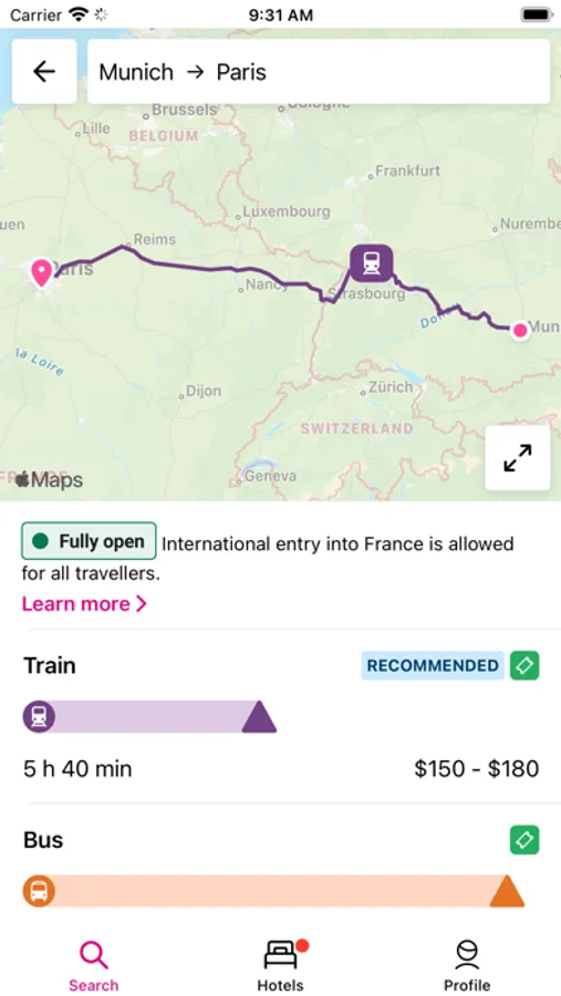 From flights and trains to buses, ferries and rideshares and more; see in an instant all the combinations so you can compare and choose the best travel option for you.
