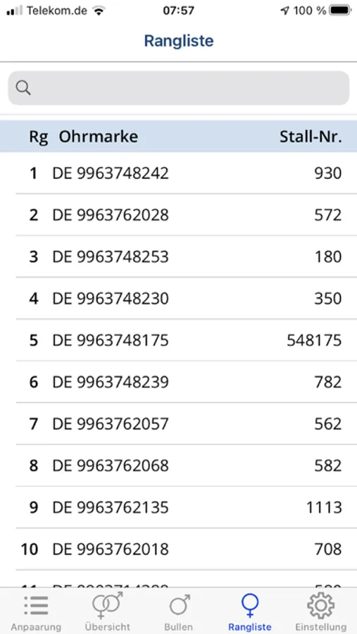 •Rangliste Ihrer Tiere (Basiert auf Ihrem Zuchtziel)