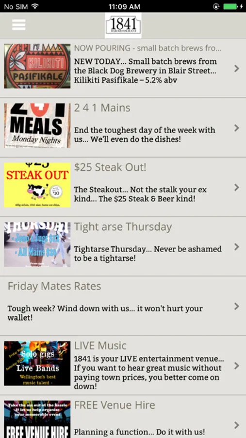 The app also allows 1841's loyal patrons to redeem in-app coupons, giving them special deals not available to the general public.