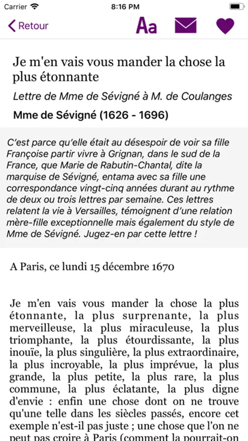 - Redécouvrez les classiques de la littérature sous une forme ludique et originale en recevant chaque jour un extrait choisi et contextualisé.