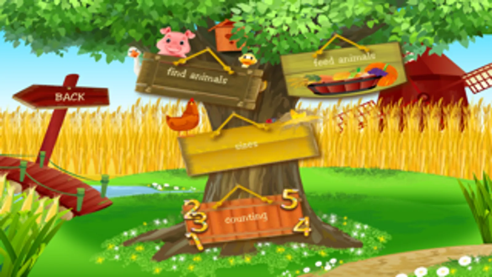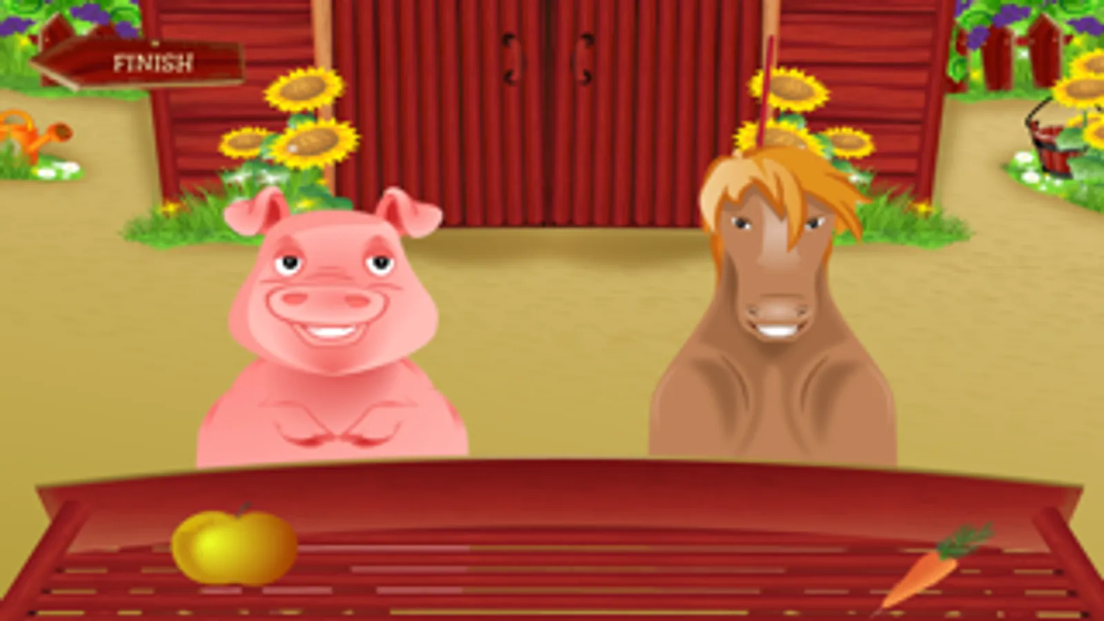 Farm Academy teaches young children vocabulary related to the farm and also size and quantity concepts. Children will learn 16 farm animals, fruit and vegetables and they will learn number 1-5 and the difference between big and small. Children will first learn the vocabulary in the learn mode and practice them in the play mode.