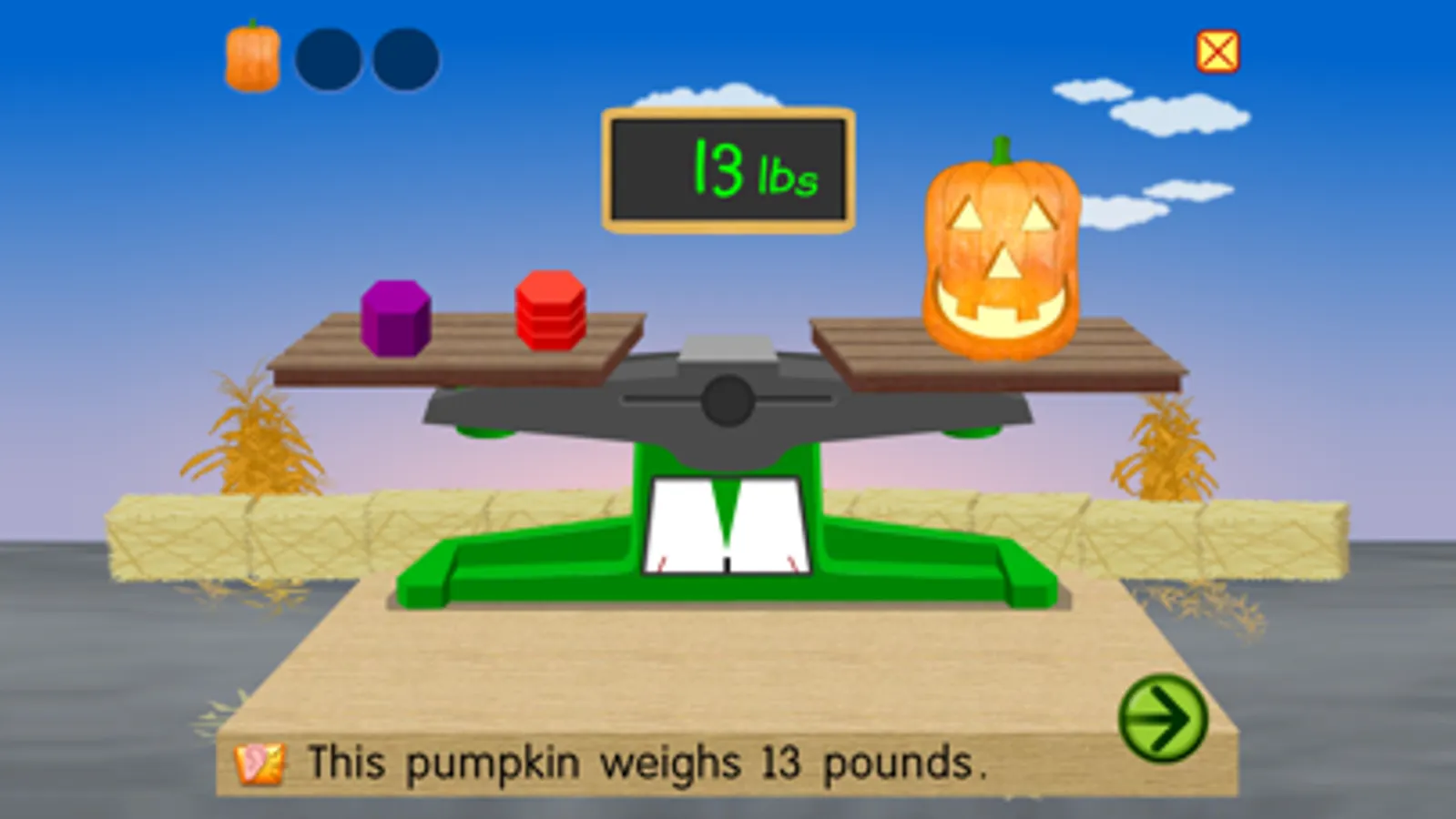Visit the Pumpkin Patch, choose a pumpkin and design a face. Weigh pumpkins in kilograms or pounds and discover which is the lightest and which is heaviest. Collect your pumpkin creations and give your favorite the blue ribbon! This app is excellent for emerging readers and young mathematicians.