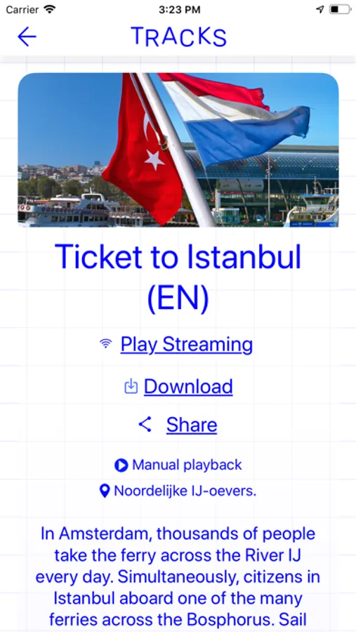 Tracks is a new app specially designed for audiowalks. Audiowalks are guided walks thoughtfully combined with the sensory attention of listening.