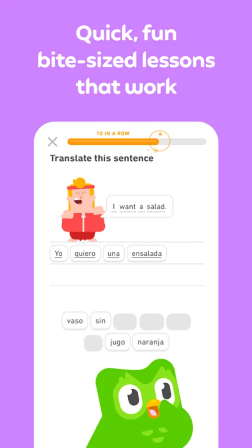 If you like Duolingo, try Super Duolingo for 14 days free! Learn a language fast with no ads, and get fun perks like Unlimited Hearts and Monthly Streak Repair.